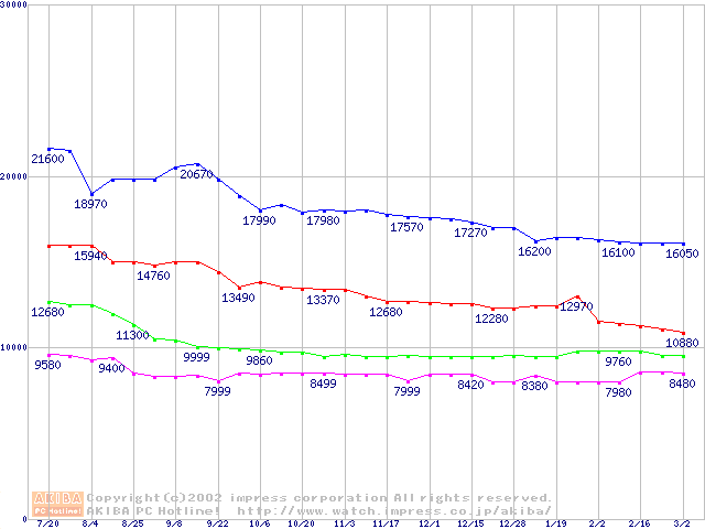 | [↓次グラフ]: | U5 (5400rpm,UltraATA/100 512KB)の最安値推移 |