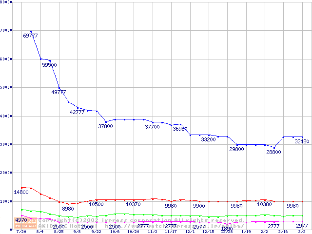 | [↓次グラフ]: | PC800 DRDRAM RIMM ECC対応の最安値推移 |