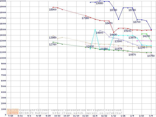 | [↓次グラフ]: | 2.5インチHDD主要製品(最安値1万5千円~2万円未満)の最安値推移 |