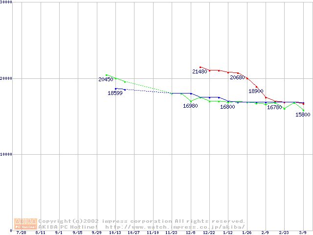 | [↓次グラフ]: | 2.5インチHDD主要製品(最安値2万円~3万円未満)の最安値推移 |