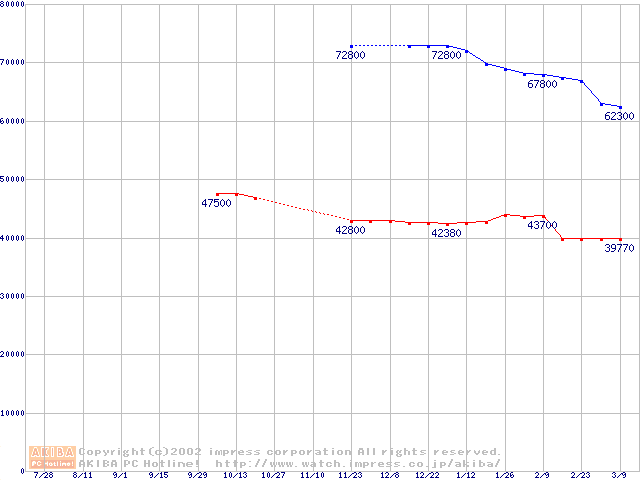 | [↓次グラフ]: | 2.5インチHDD 10GB~20GB未満(9.5mm厚)の最安値推移 |