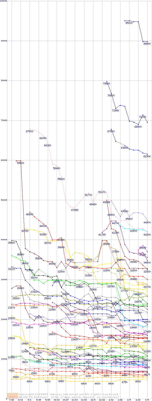 CPU主要製品の最安値推移
