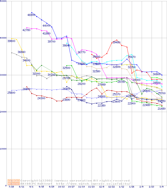 CPU主要製品(最安値3万円以上)の最安値推移