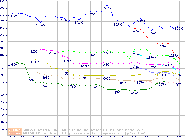 Socket 370・FSB 133MHzの最安値推移