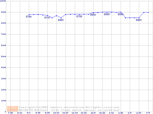| [↓次グラフ]: | HDD 20GB~30GB未満(7200rpmクラス)の最安値推移 |