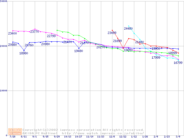 | [↓次グラフ]: | HDD 100GB以上(7200rpmクラス)の最安値推移 |