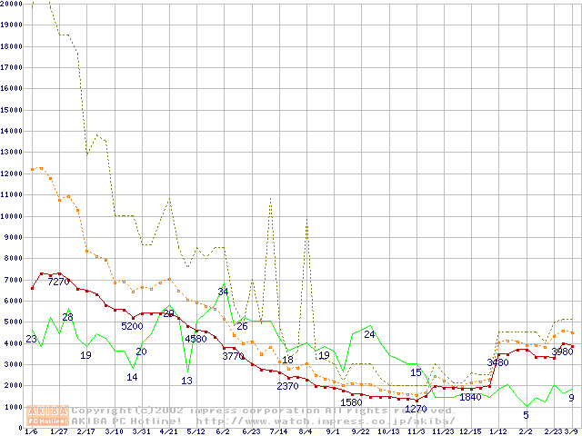 PC133 SDRAM DIMM CasLatency=2の最安値推移