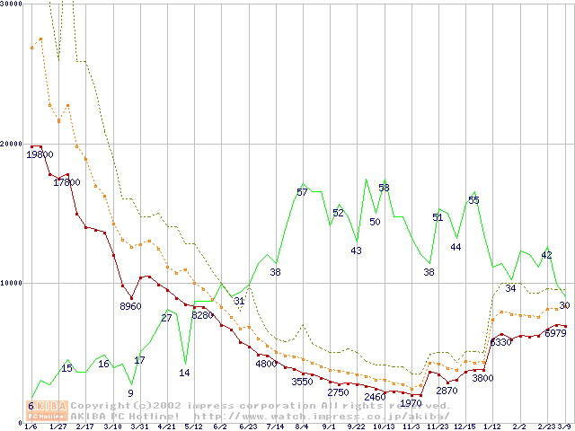 PC133 SDRAM DIMM CasLatency=2の最安値推移