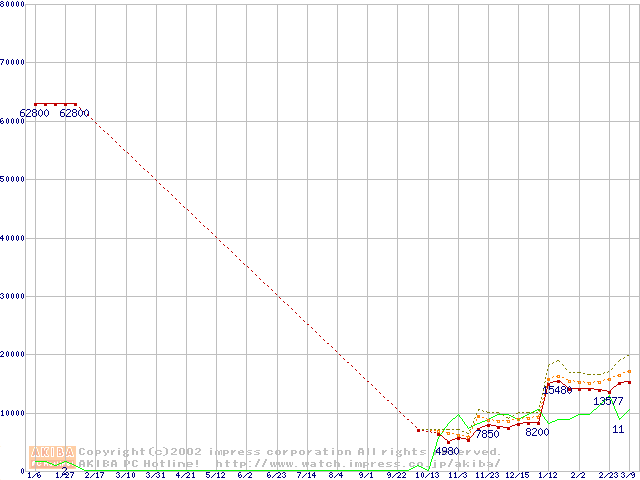 PC133 SDRAM DIMM CasLatency=2の最安値推移