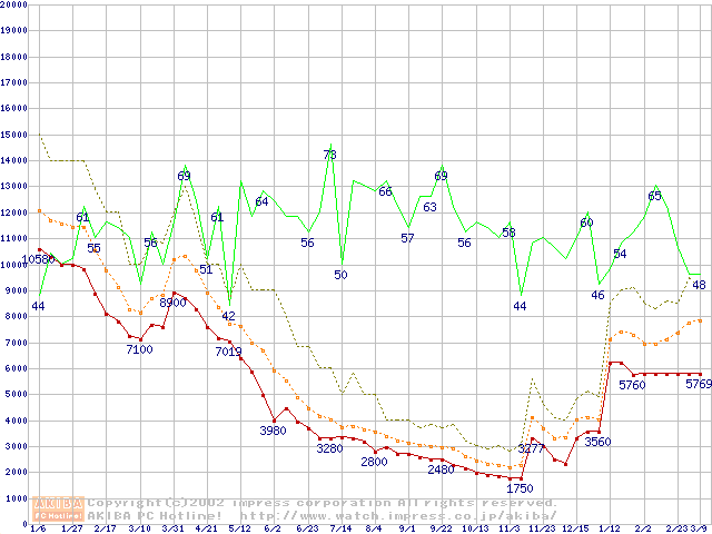 PC133 SDRAM DIMM CasLatency=3の最安値推移