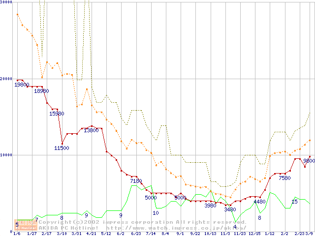 PC133 SDRAM DIMM CasLatency=3 ECC対応の最安値推移