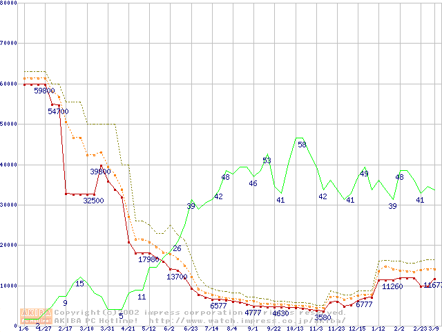 PC133 SDRAM DIMM CasLatency=3の最安値推移