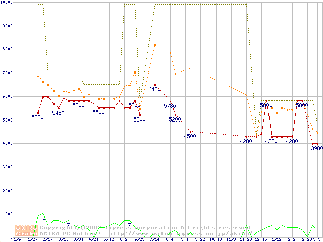 Socket 370・FSB 66MHzの最安値推移