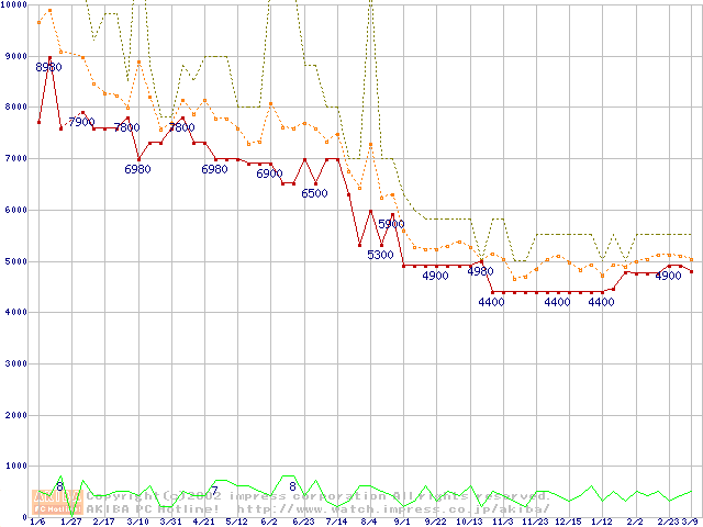 Socket 370 (PPGA,FSB 66MHz,L2 128KB)の最安値推移