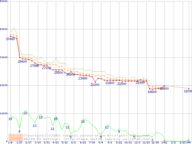 Pentium III 933MHz SECC2 リテールパッケージの価格推移
