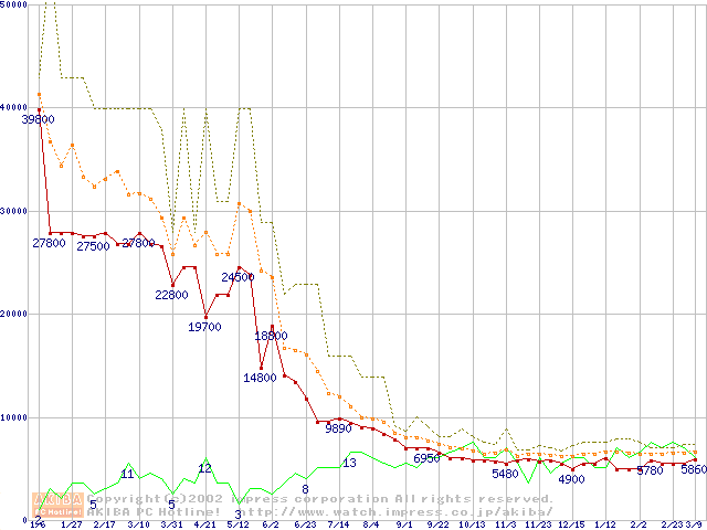 PC800 DRDRAM RIMM ECC対応の最安値推移