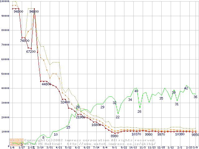 PC800 DRDRAM RIMMの最安値推移