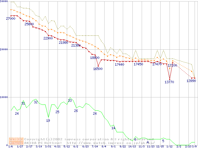 HDD主要製品の最安値推移