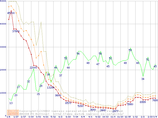メモリ主要製品の最安値推移