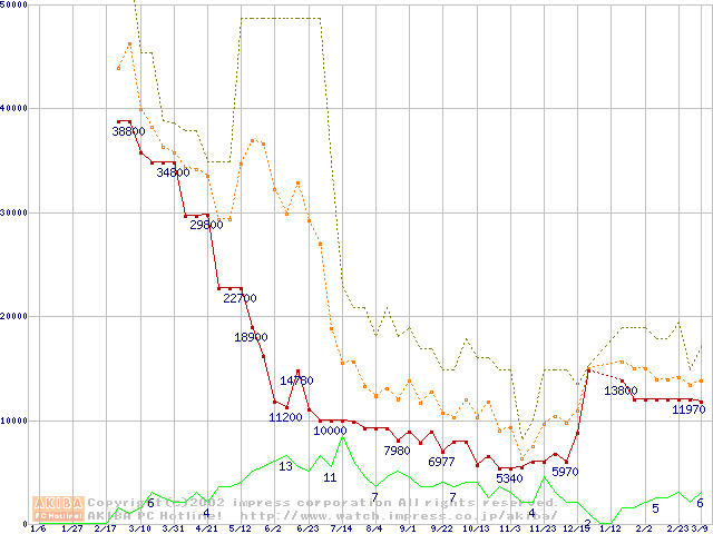 PC2100(DDR266) DDR SDRAM DIMM ECC対応の最安値推移