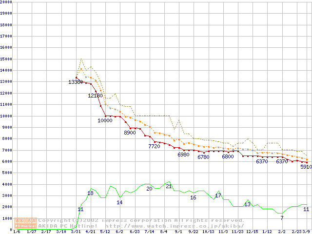 Socket A (Spitfire,PGA,FSB 200MHz,L2 64KB)の最安値推移