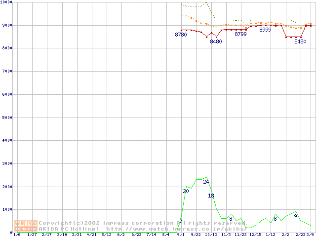 Deskstar 60GXP (7200rpm,UltraATA/100 2MB)の最安値推移