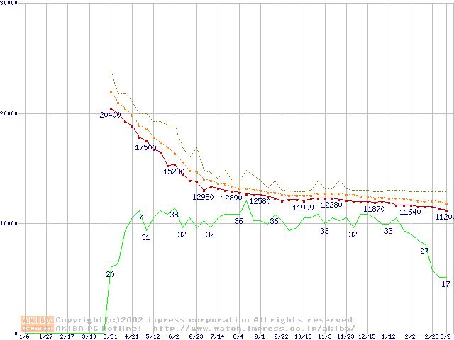 Deskstar 60GXP (7200rpm,UltraATA/100 2MB)の最安値推移