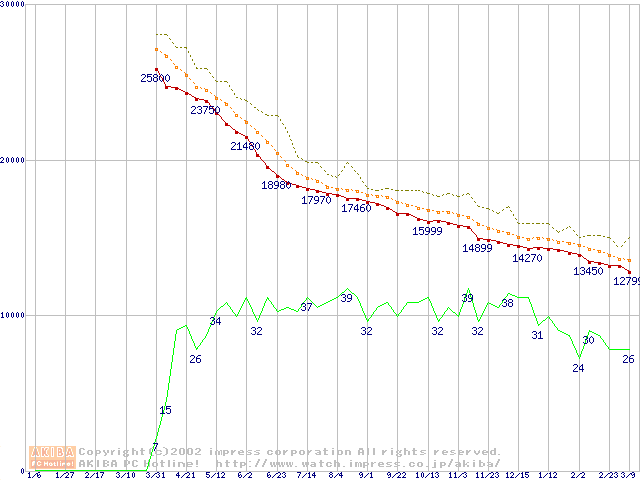 Deskstar 60GXP (7200rpm,UltraATA/100 2MB)の最安値推移