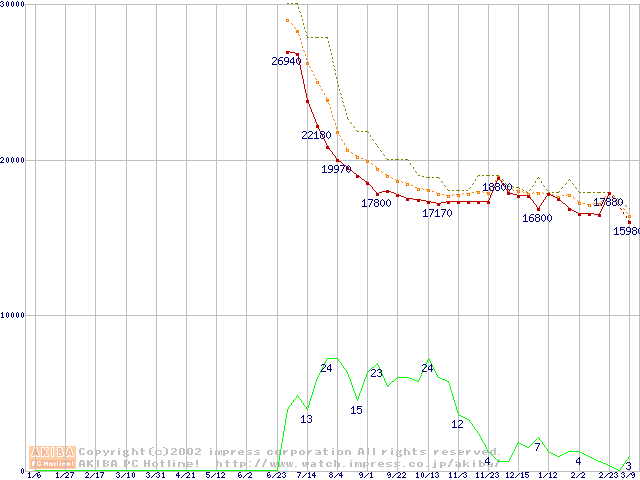 DiamondMax D540X (5400rpm,UltraATA/100,40GB/Platter)の最安値推移