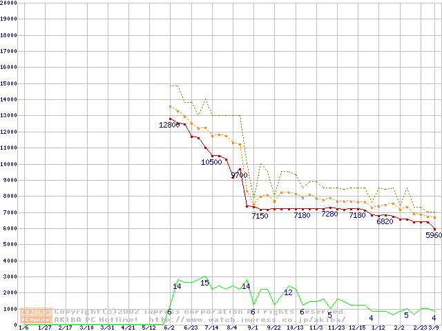 Socket A (Spitfire,PGA,FSB 200MHz,L2 64KB)の最安値推移