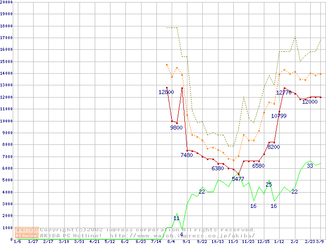 PC2100(DDR266) DDR SDRAM DIMM ECC対応 Registeredタイプの最安値推移