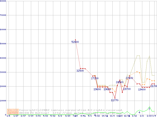 PC2100(DDR266) DDR SDRAM DIMM ECC対応の最安値推移
