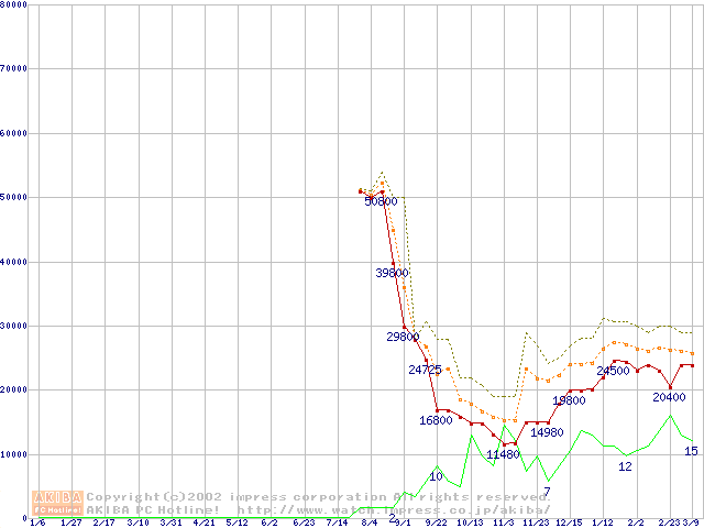 メモリ主要製品の最安値推移