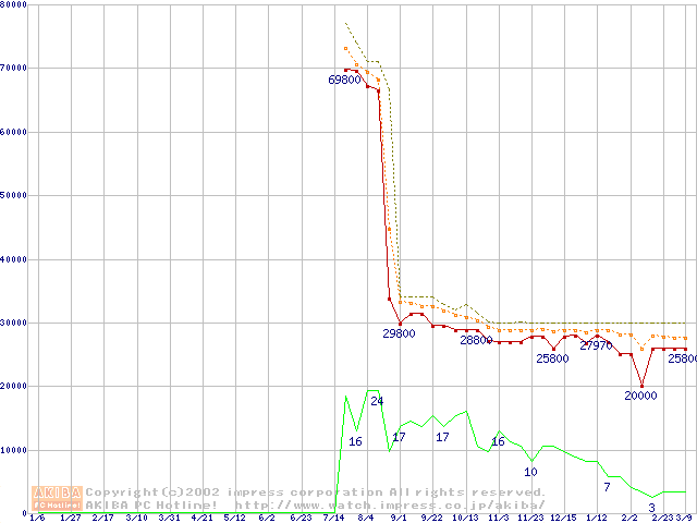 Pentium 4 1.80GHz(423pin)リテールパッケージ(RIMMなし)の価格推移