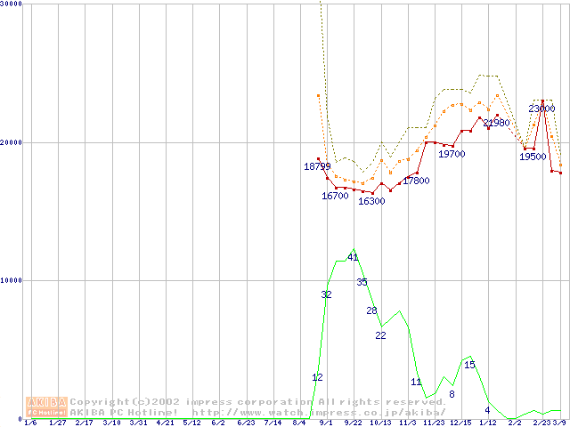 Socket 478 (micro-PGA,L2 256KB,Willamette)の最安値推移