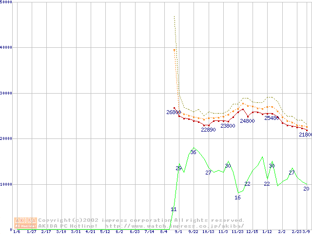Socket 478 (micro-PGA,L2 256KB,Willamette)の最安値推移