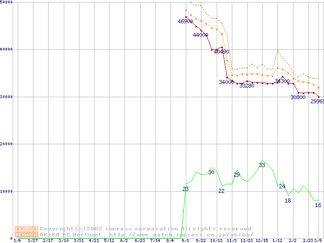 Socket 478 (micro-PGA,L2 256KB,Willamette)の最安値推移