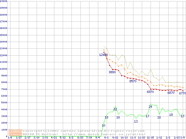 Socket A (Morgan,PGA,FSB 200MHz,L2 64KB)の最安値推移