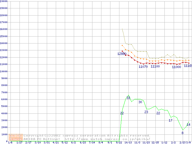 DiamondMax Plus D740X (7200rpm,UltraATA/133,40GB/Platter)の最安値推移