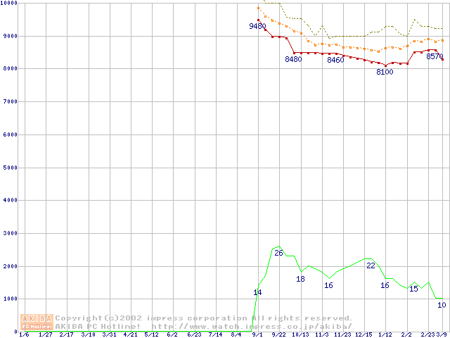 Celeron 950MHz FC-PGA リテールパッケージの価格推移