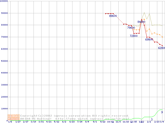 PC2100(DDR266) DDR SDRAM DIMM ECC対応 Registeredタイプの最安値推移