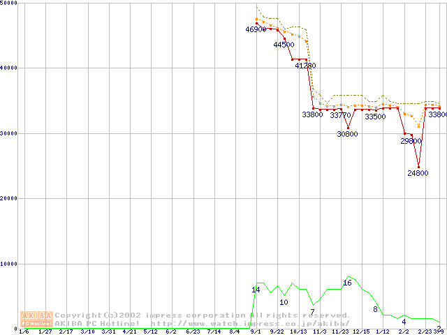 Socket 423 (PGA,L2 256KB)の最安値推移