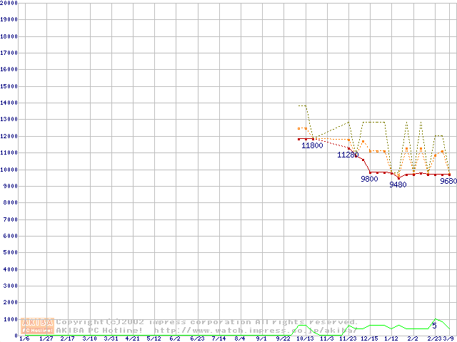Travelstar 15GN (9.5mm,4200rpm,UltraATA/100,512KB,流体軸受)の最安値推移