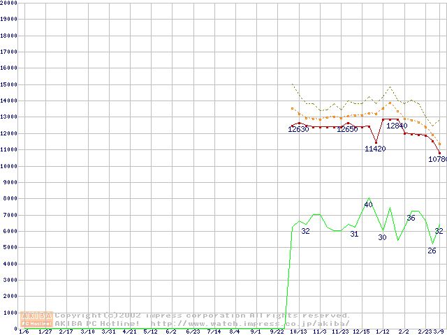 Celeron 1.20GHz FC-PGA2 リテールパッケージの価格推移