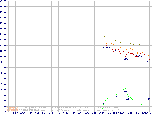 Socket A (Morgan,PGA,FSB 200MHz,L2 64KB)の最安値推移