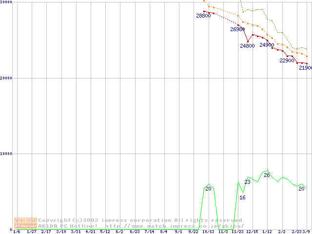 2.5インチHDD主要製品(最安値2万円~3万円未満)の最安値推移