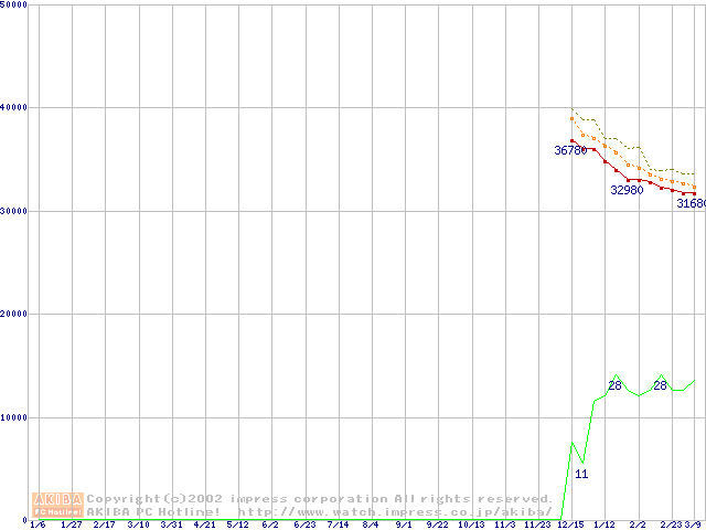 DiamondMax D540X (5400rpm,UltraATA/133,40GB/Platter)の最安値推移