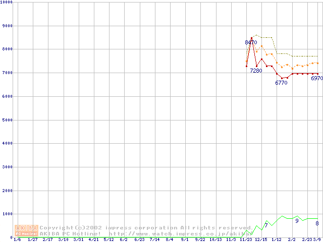 Socket 370 (PGA,FSB 133MHz,L2 64KB)の最安値推移