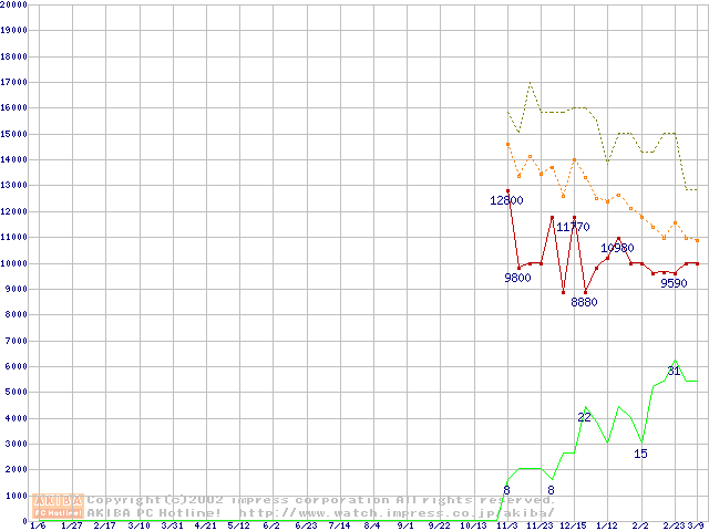 PC2700(DDR333) DDR SDRAM DIMMの最安値推移