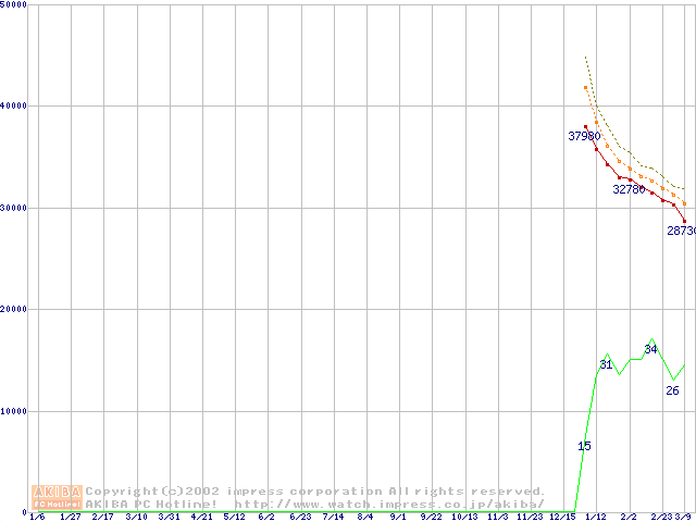 Deskstar 120GXP (7200rpm,UltraATA/100 2MB)の最安値推移